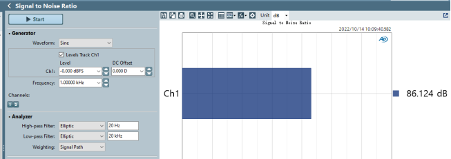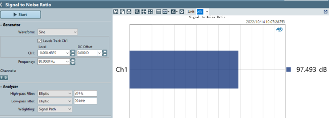 Test indicator one: total harmonic distortion plus noise of the power amplifier(THD+N)