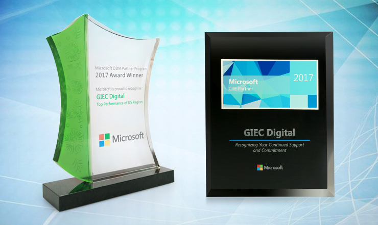 In appreciation of the support and dedication of their partners, Microsoft company presented awards to partners who have made outstanding contributions. GIEC Digital won the "2017 CTE Partner Award" and "the 2017 U.S. Regional Best Performance Award" from Microsoft. This is not only an honor, but also a motivation for GIEC to continue to move forward.
