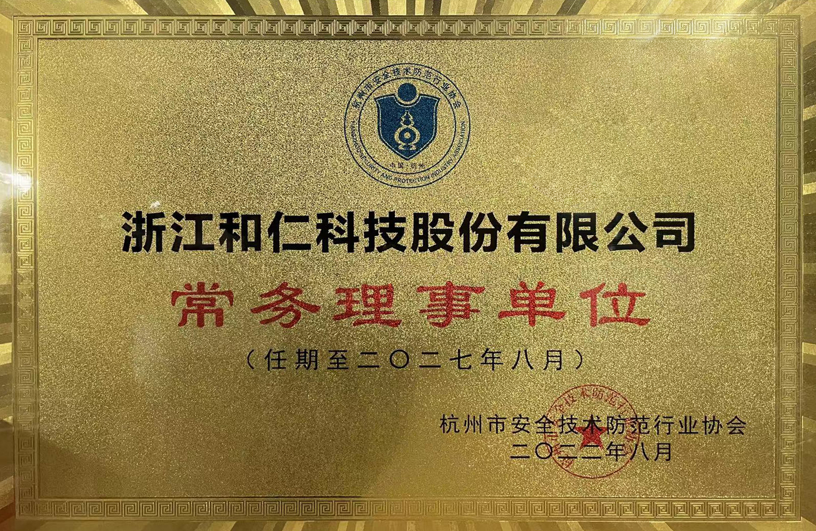 喜訊 | 和仁科技獲“杭州市安全技術(shù)防范行業(yè)協(xié)會常務(wù)理事單位”授牌