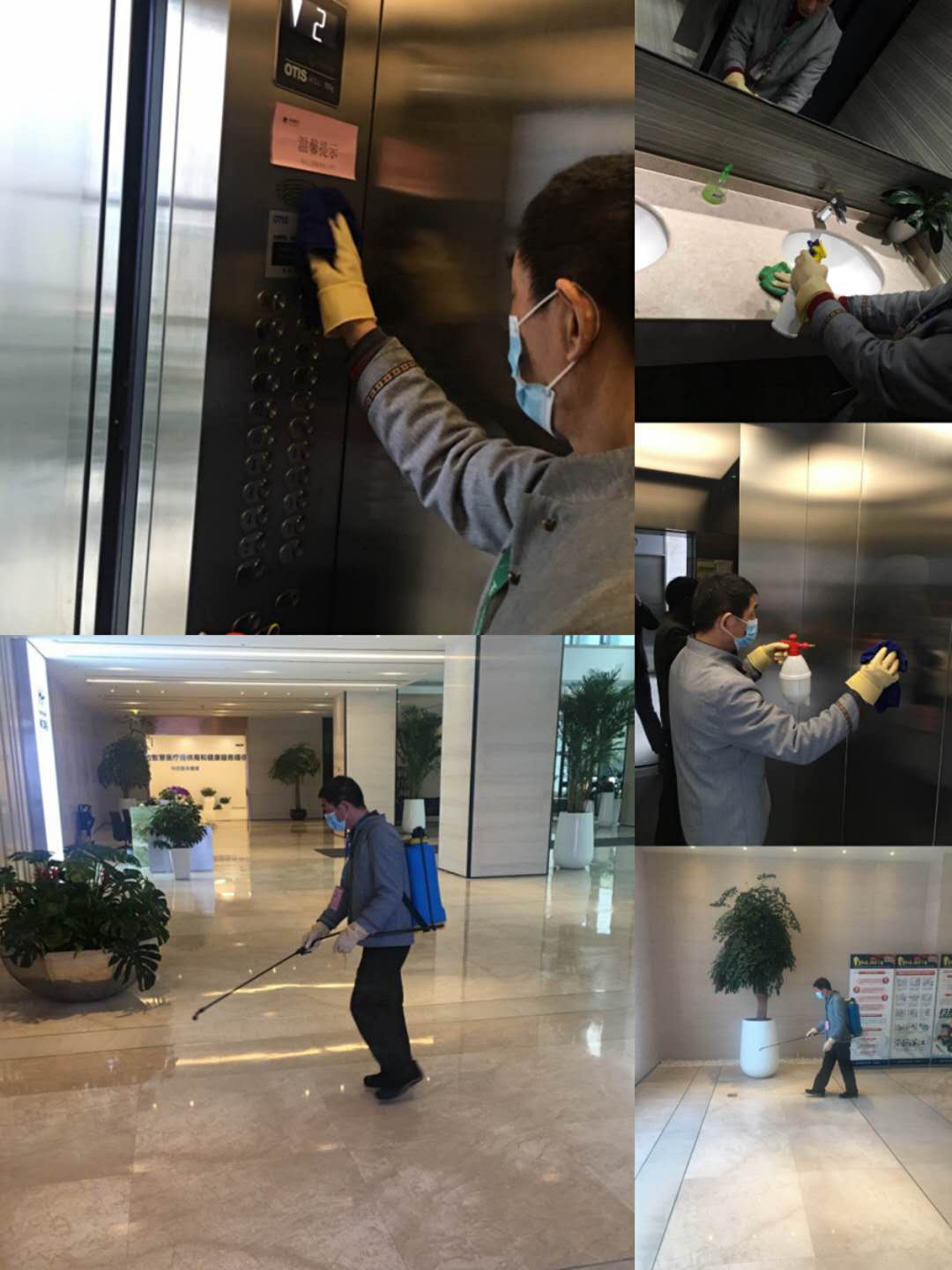 復(fù)工期間,和仁科技大廈公共區(qū)域(大堂、展廳、各樓層茶水間、樓道、地下車庫(kù)、電梯間等)進(jìn)行噴灑消毒。針對(duì)門把手、開(kāi)關(guān)、電梯按鍵等頻繁交叉使用區(qū)域加強(qiáng)消毒頻次。工作組建立全員晨檢、夕查機(jī)制篩查體溫,為員工配備醫(yī)用口罩、配置消毒液等公共應(yīng)急物資,并設(shè)立醫(yī)用口罩集中回收點(diǎn)等,所有服務(wù)人員將全天佩戴口罩工作,建立疫情防控消殺管理日志。